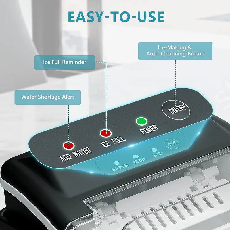 Make fresh ice on demand at home, in the RV, or on the patio. This portable maker turns out the first batch fast and keeps going quietly to 26 pounds a day.