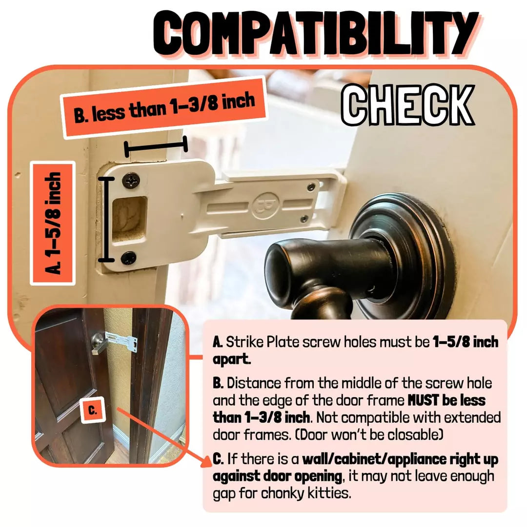 Install in minutes by replacing the strike plate, then set the opening between 3 and 5.5 inches. You can still use the knob or handle from either side and close the door completely when needed. Patented design, made in the USA.